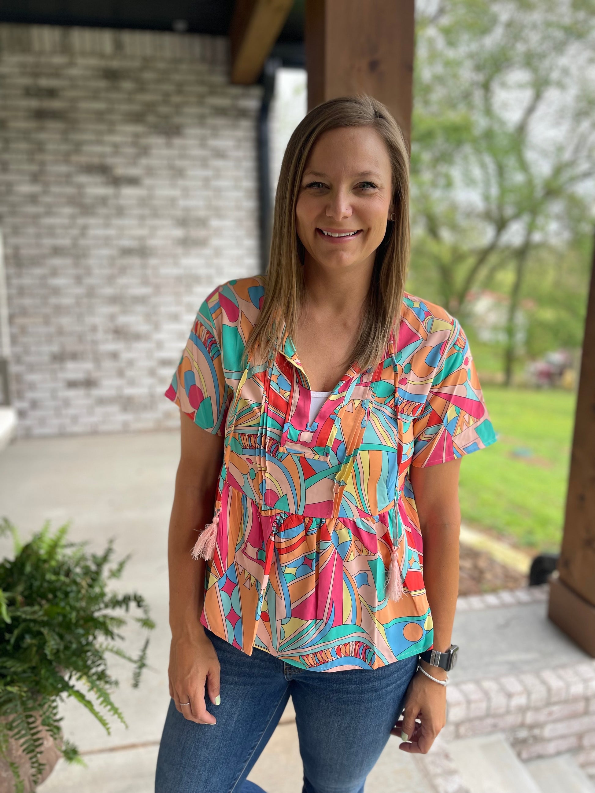 Bright colors meet fun style in this fun top!