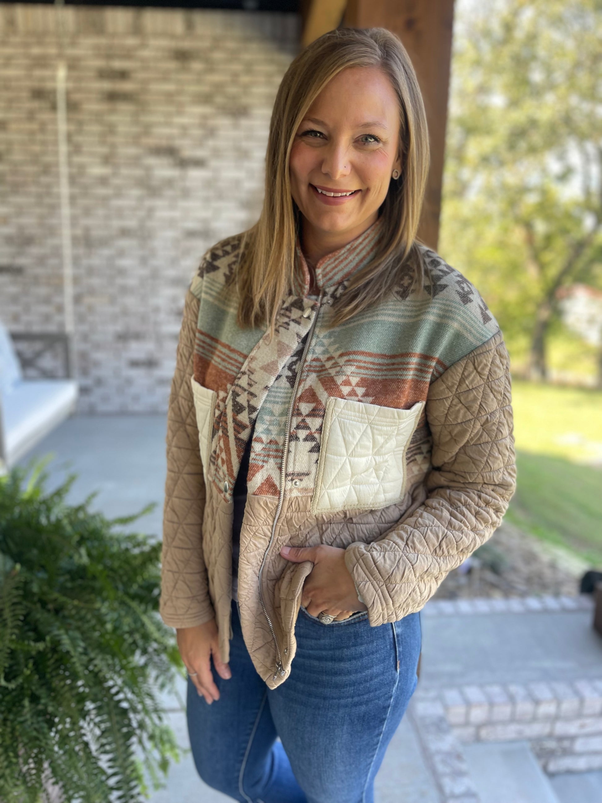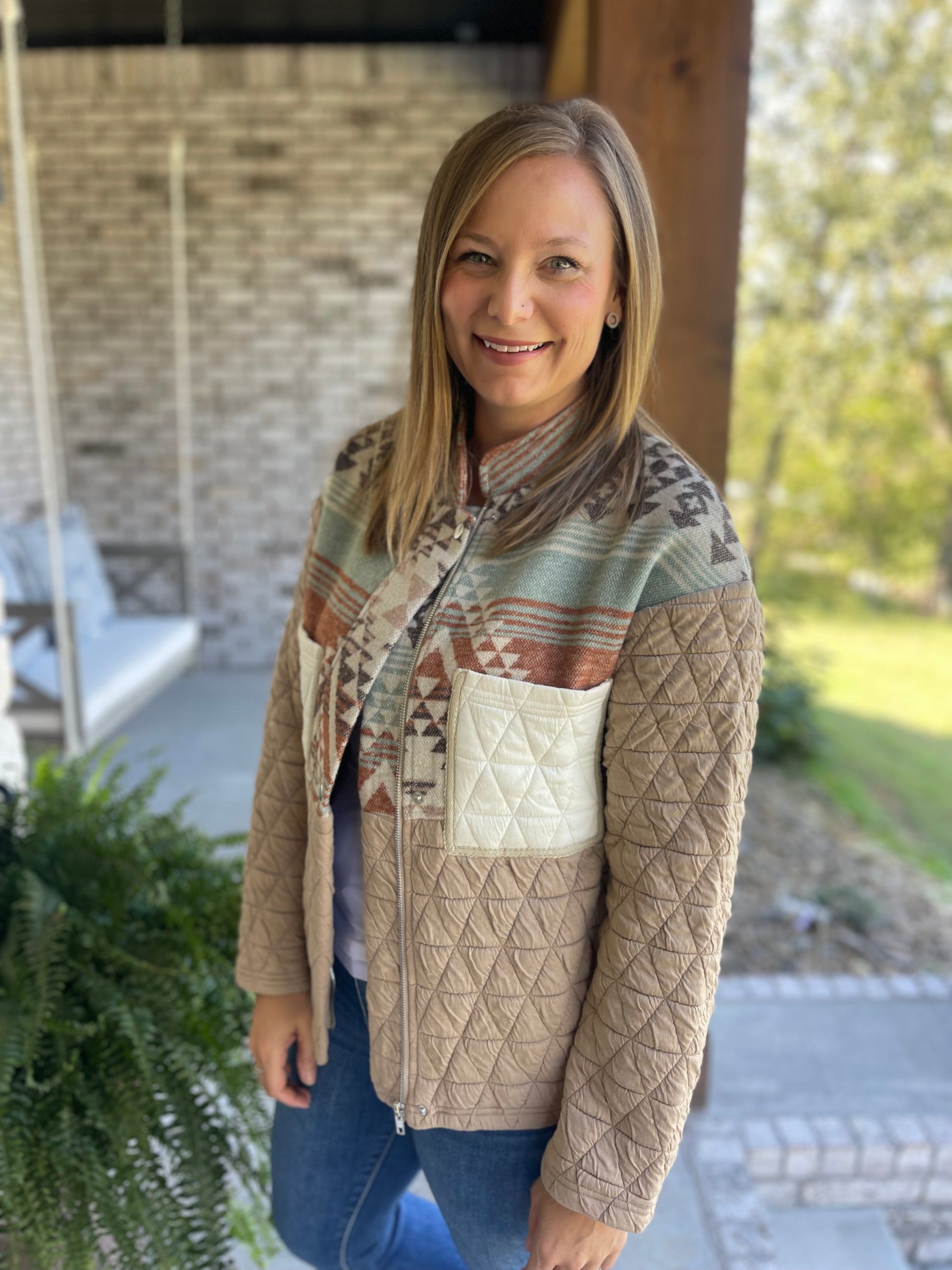 This jacket makes layering fun with beautiful colors, functional zipper, and a dash of western chic.